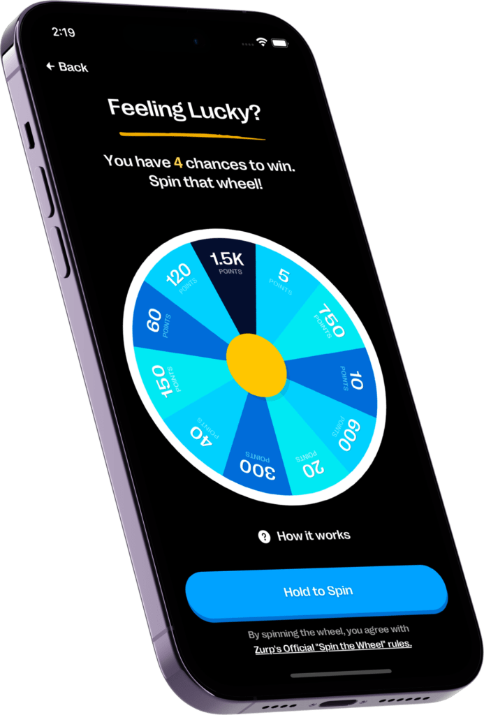 (No credit checks)Deposit Money Into Your Zurp AccountEarn Points By Making Everyday Purchases And Paying RentSpin The Wheel 6 For Extra Points DailyRedeem Rewards & Experiences